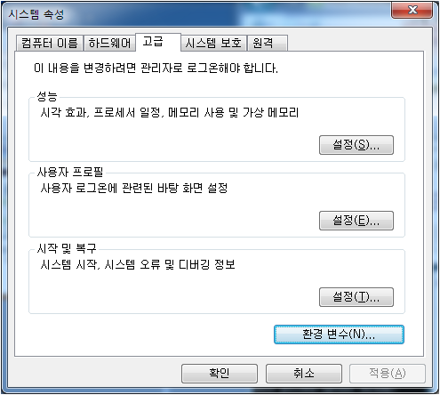 STEP 2. 시스템 속성창 고급 탭 → 환경변수