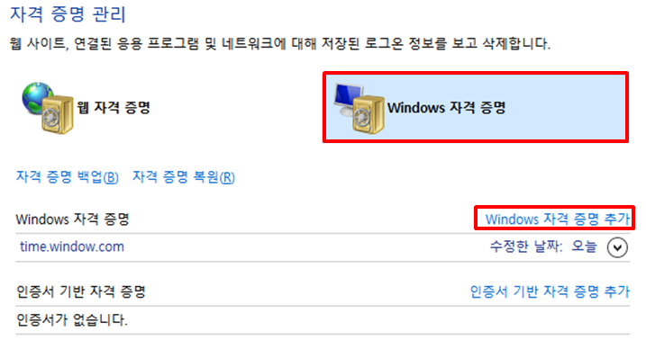 STEP 3. Windows 자격 증명 클릭
