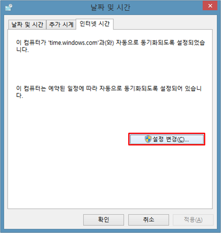 STEP 3. 인터넷 시간 탭 클릭 → 설정 변경 클릭