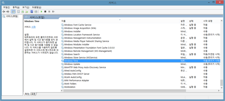 STEP 2. 서비스창에서 Windows Time 찾아 시작유형을 '자동'으로 변경