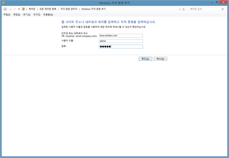 인터넷 또는 네트워크 주소: time.windows.com