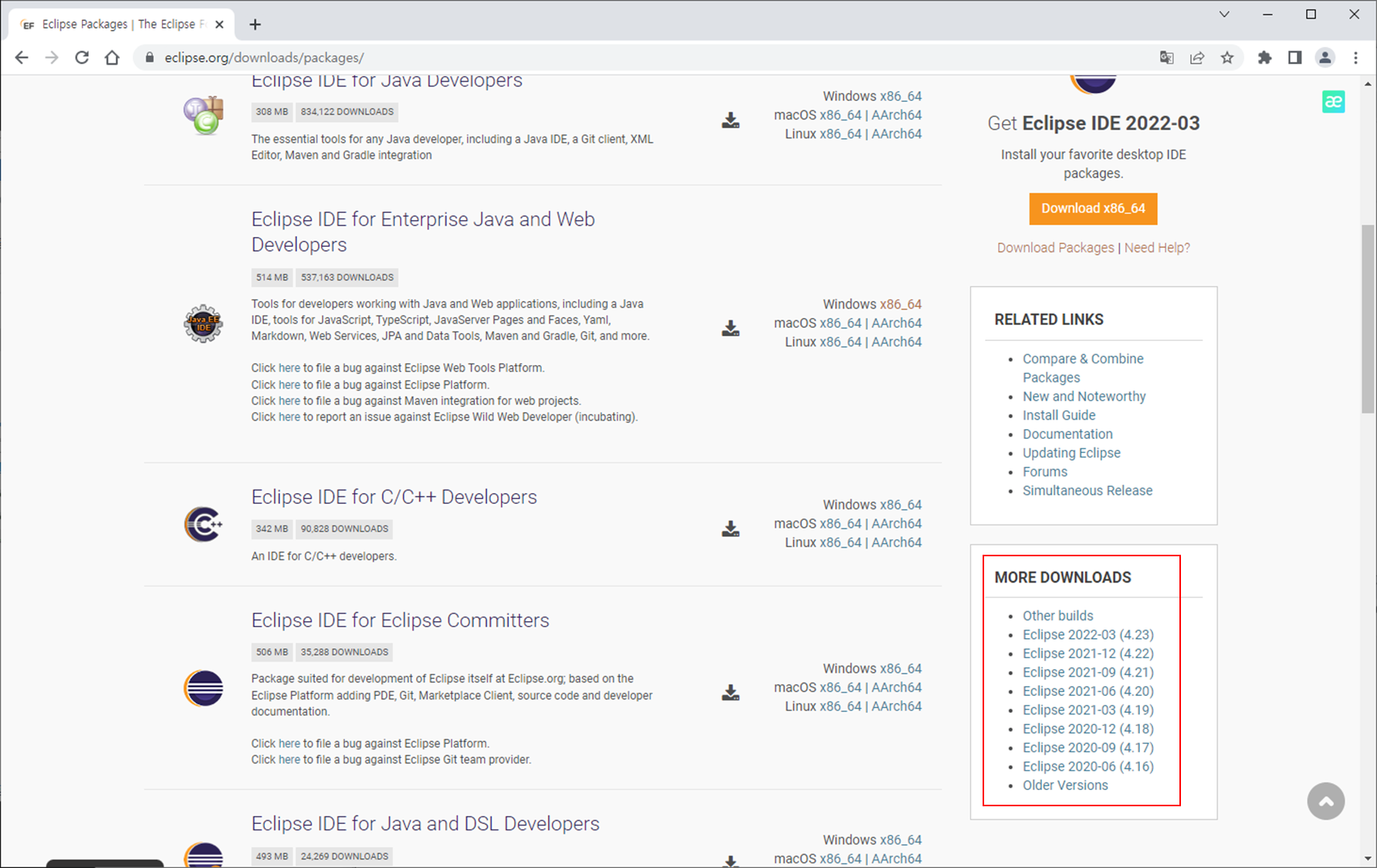 STEP 1. 이클립스 다운로드 화면으로 이동하여 Download Packages 클릭