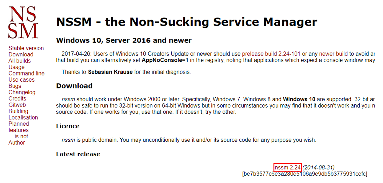 1. 인터넷에서 nssm 다운받아 설치