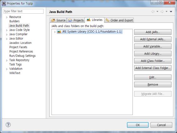 STEP 2. 아래와 같은 창이 팝업되면 JRE System Library [CDC-1.1/Foundation-1.1]을 더블클릭