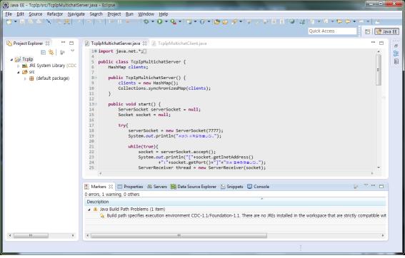 jdk1.7.0_60를 설치했을 경우 CDC-1.1/Foundation-1.1 이 아닌 JavaSE-1.7 (jre7)을 사용해야만 이 경고가 사라집니다.