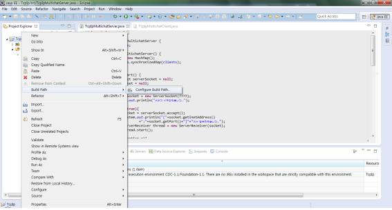 STEP 1. 왼쪽에 기본적으로 위치하는 Project Explorer창에서 마우스 우클릭 → Build Path → Configure Build Path