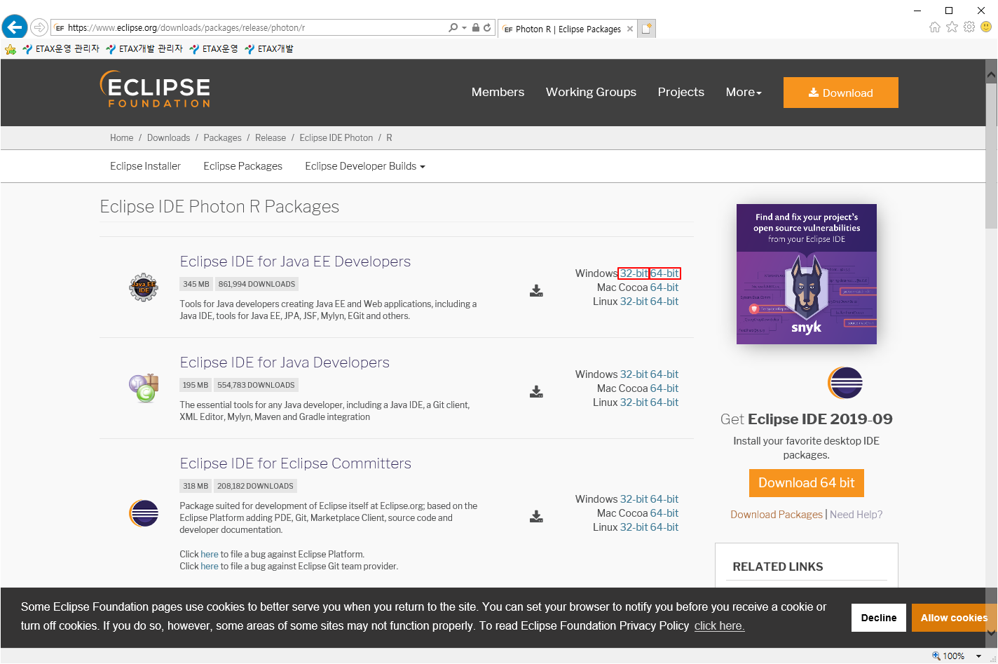 STEP 1. 링크를 통해 이클립스를 다운 → Windows 32Bit or Windows 64Bit