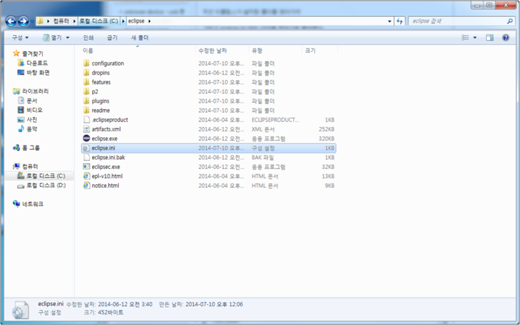STEP 2. 이클립스를 설치한 폴더로 이동 -> eclipse.ini파일 우클릭 -> EditPlus3 혹은 UltraEdit 클릭