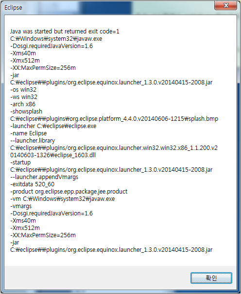 Java was started but returned exit code=1 에러 추가로 발생