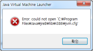 이클립스 설치 후 실행시 Error: could not open 'C:\~\jvm.cfg' 라는 에러 발생