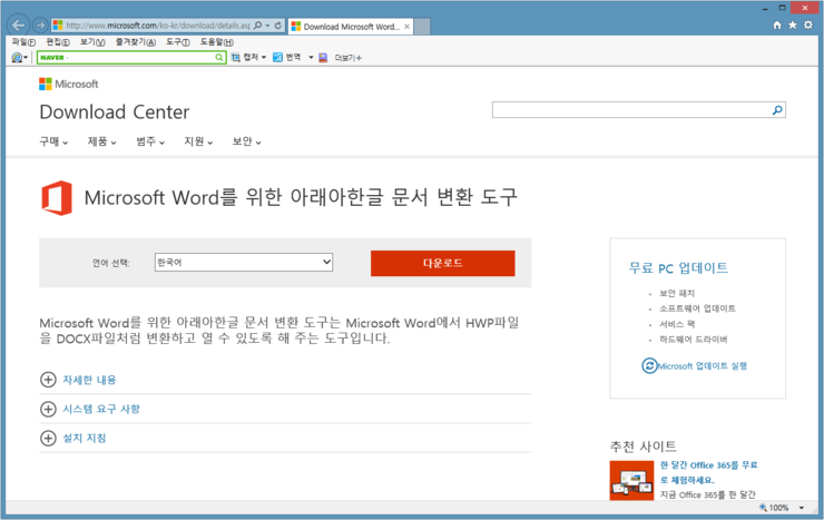 Microsoft Word를 위한 아래아한글 문서 변환 도구